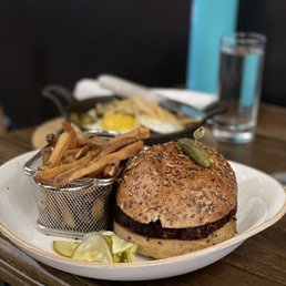Very cute place! Have been here a bunch for dinner (I know they also have an amazing brunch). The food is great, especially the burgers. It has a very eclectic menu. The drinks are also great and the staff is very attentive and nice. (Apologies for the picture of the half eaten crab cake slider! Forgot to take a picture before digging in!)